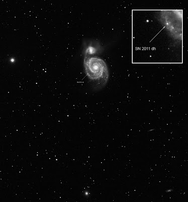 Imagen de 600s de exposición en Luminancia obtenida por Jaime Izquierdo con el Takahashi TOA-150mm de Astrocamp-Nerpio de la supernova de M51.